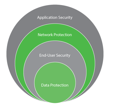 To combat evolving threats, create an entire ecosystem of layered security – data protection, end-user security, network protection and application security.